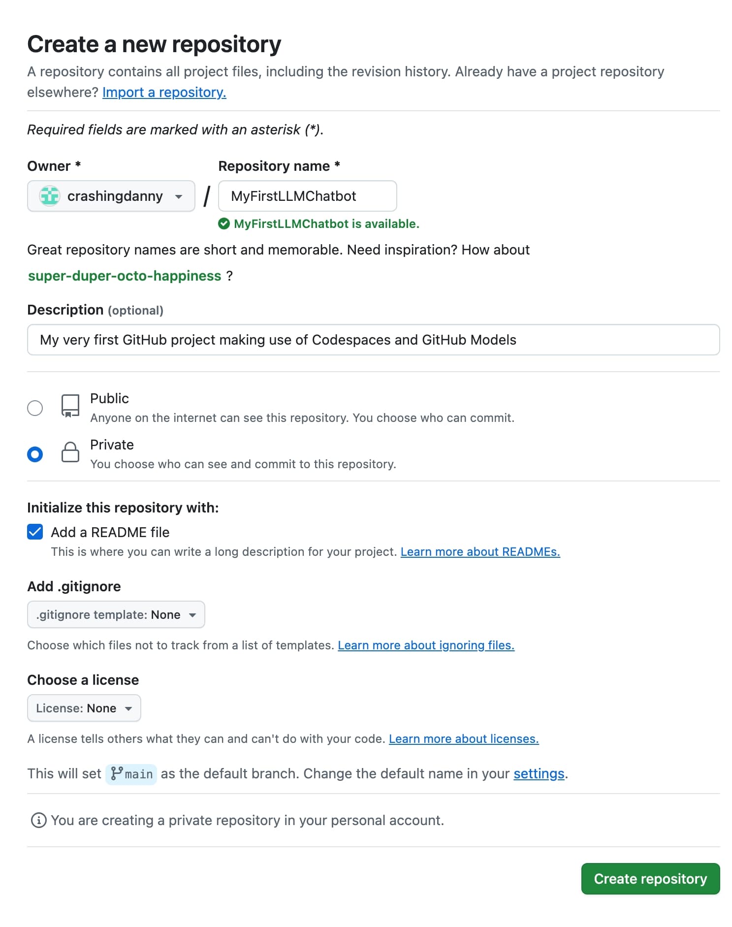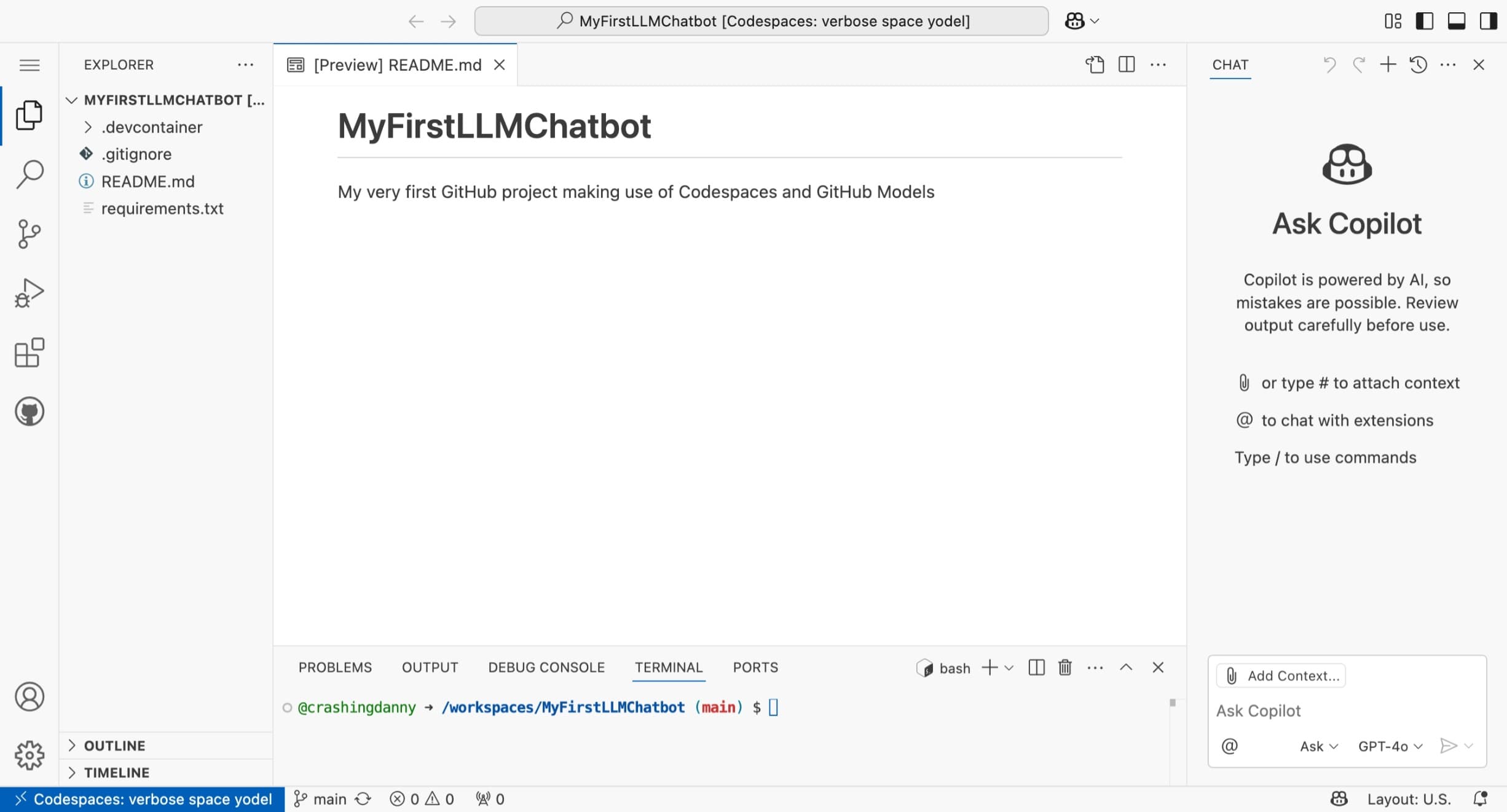 My very first GitHub project using Codespaces and GitHub Models - You can make it public or private to your liking