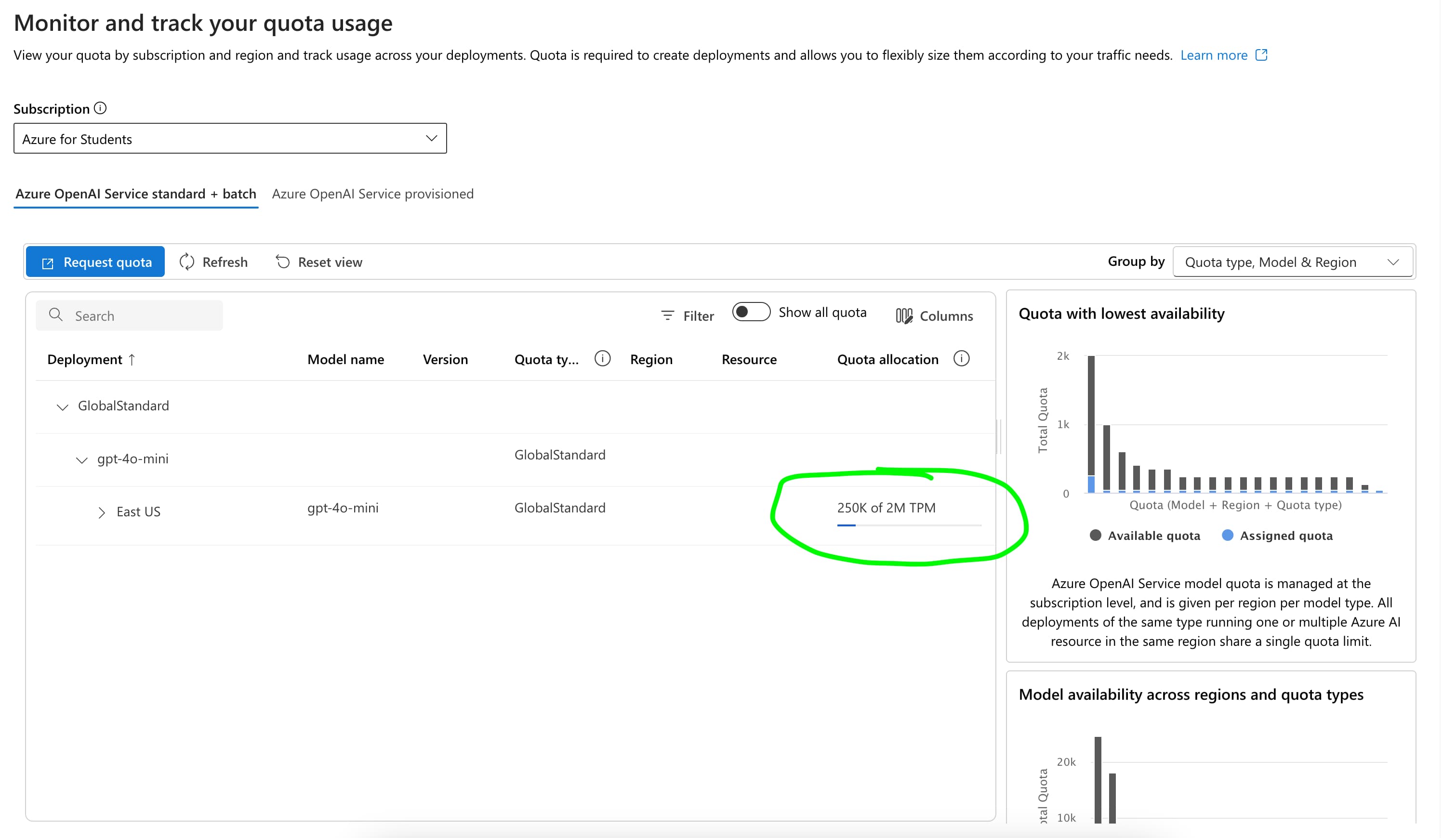 If you face limitations during deployment or cannot increase the token limit above 1K, click Request Increase and provide a justification.