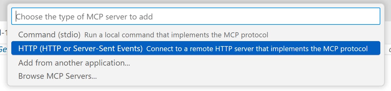 HTTPoption and select it - When asked for an URL of the remote MCP server, enter: