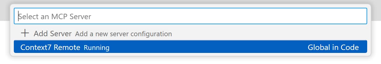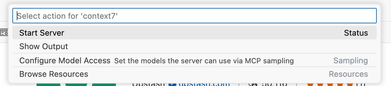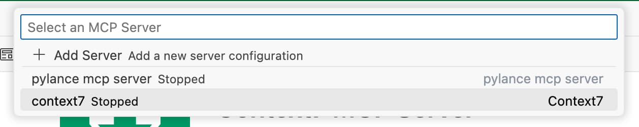 Context7 MCP Serverfrom the list, and then chooseStart Server. -