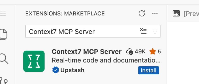 Context7and look for theContext7 MCP Serverextension by Upstash. (Or click this link: Context7 MCP Server)