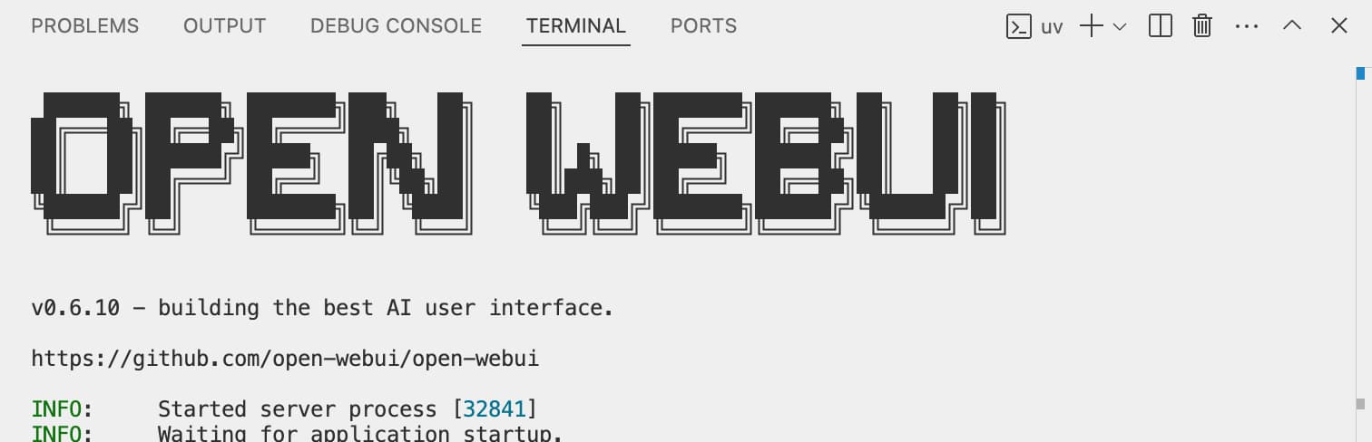 Finally, you can run Open WebUI by running the following command in the terminal: